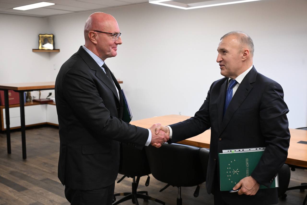 Заместитель председателя правительства РФ Дмитрий Чернышенко и глава Адыгеи Мурат Кумпилов обсудили ход реализации ключевых проектов региона