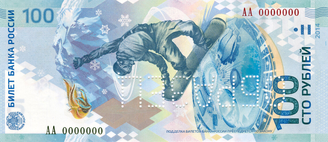 В обращение памятные 100-рублевые банкноты, посвященные Играм-2014 в Сочи, Банк России выпустил в 2013 году, их тираж составлял 20 млн экземпляров. Кроме того, ЦБ РФ к Олимпиаде выпустил 46 видов памятных и инвестиционных монет общим тиражом порядка 36,7 млн. штук.