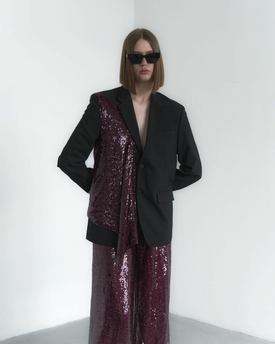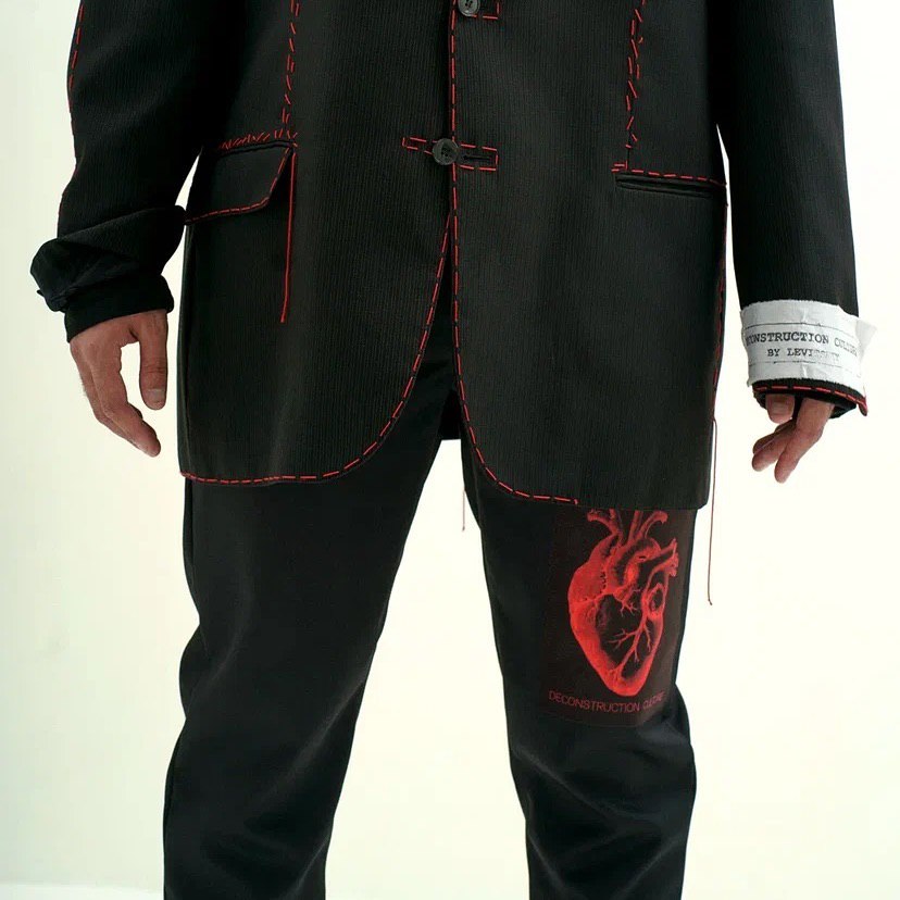 — У меня двойное название — Deconstruction Culture by Levitsky. На первый план я иногда ставлю свою фамилию. Но Deconstruction Culture, она же культура деконструкции, это философия разрушения. Но не в плохом смысле слова. Это та культура, когда в одежде соединяются ткани разных фактур, которые теоретически и совмещать нельзя было. Это шерсть и кожа, шелк и хлопок. Или, допустим, у меня бывают модели, которые напоминают пиджак, но сшиты по лекалам рубашки. Это как паззлы, которые выпадают, не соединяются, но если ты их компонуешь, то получается очень гармонично. Это про разрушение привычных стереотипов.