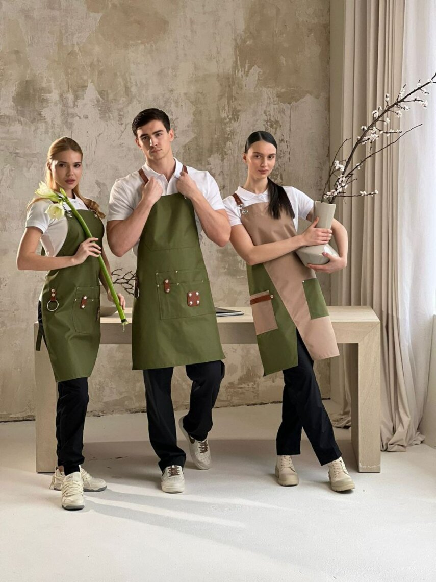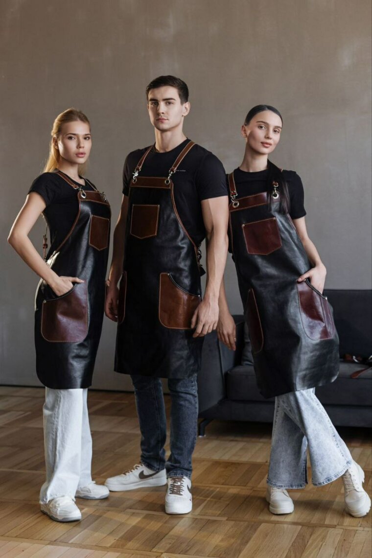 Одновременно с этим я обратил внимание, что рынок запросил стильные фартуки с кожаными лямками, с вышивкой логотипов. Прикольные и модные. Поэтому мы начали работать в этой сфере.