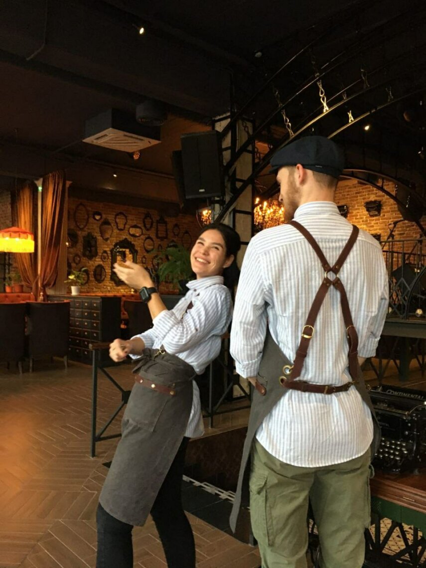 — Да, чаще всего так и случается. Не все приходят с готовой идеей, и мы начинаем предлагать: какие кармашки, какой цвет… К нам обращался ресторан «Бородашвили», мы пошили им обычные фартуки, им понравилось. Потом они решили открывать новый ресторан, и захотели что-то необычное.