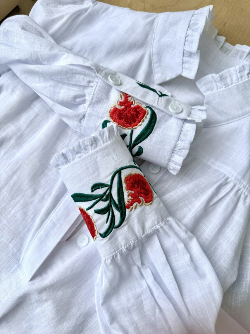 В будущем, я надеюсь, восточные узоры появится в моем творчестве. Я даже заказала специальные трафареты, которые делают из дерева для создания узоров. Это следующий этап. Начало уже положено, недавно у нас в ассортименте появилась рубашка с вышивкой восточного мотива.