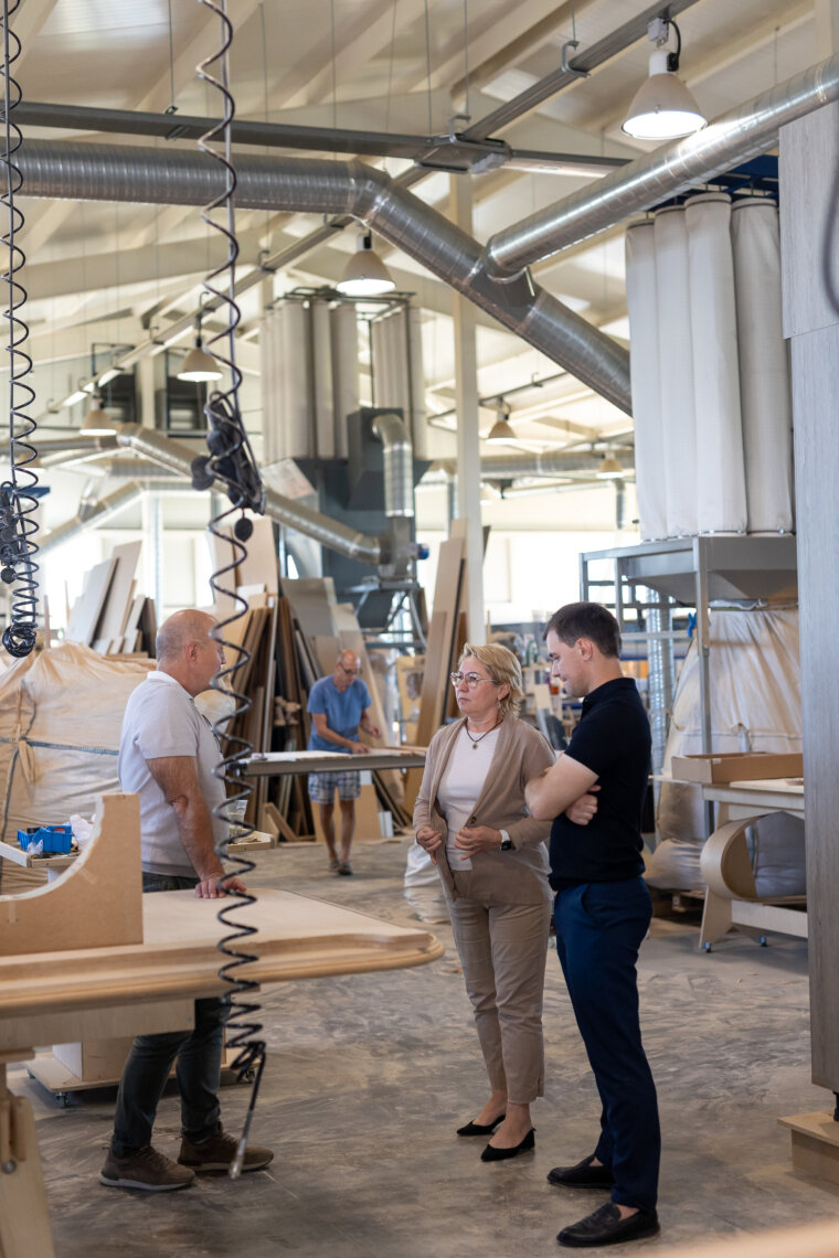 «Так чтобы я пошел на рынок и сказал «Мне нужно два мебельщика, два столяра», и они сразу нашлись – такого нет. Рынка «Ищу работу» нет, сотрудников нужно искать или воспитывать у себя на производстве», — отмечает основатель производства.