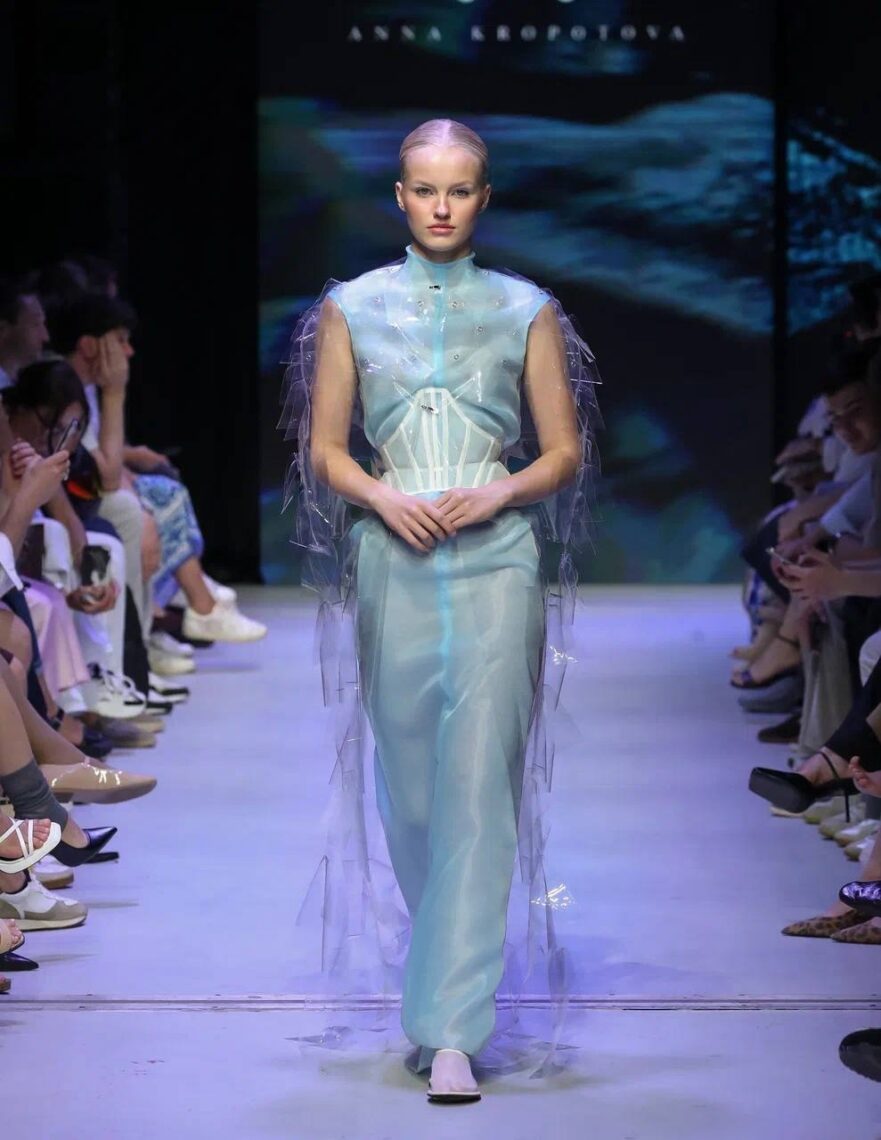 «Сохраняя ДНК бренда, мы исследуем новые текстуры и силуэты: выразительная ткань с эффектом гофре, играющая светом и тенью; сложные конструкции, корсеты и статичные формы, напоминающие складки льда; элегантные акценты для создания незабываемого образа. Эта коллекция — для ценителей искусства и тонкой эстетики. Для тех, чья стихия — вечера в театрах, прогулки по музеям, открытие выставок и неторопливые встречи с подругами в выходные», — рассказала Анна Кропотова.