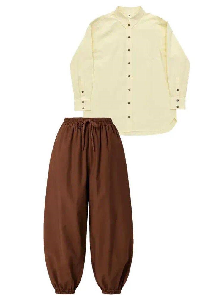 В новой линейке удобные штаны-шаровары и мужские рубашки. Недавно в ассортименте изделий бренда добились модели рубашек и брюк на размеры плюс сайз.