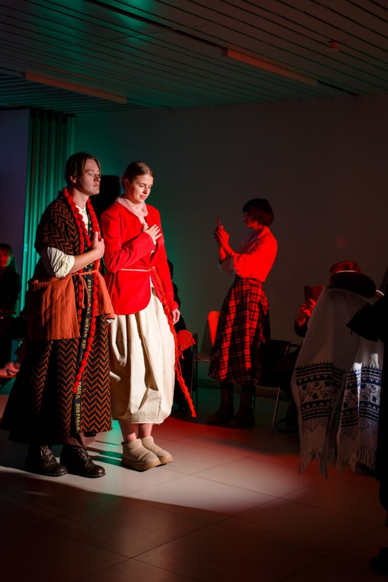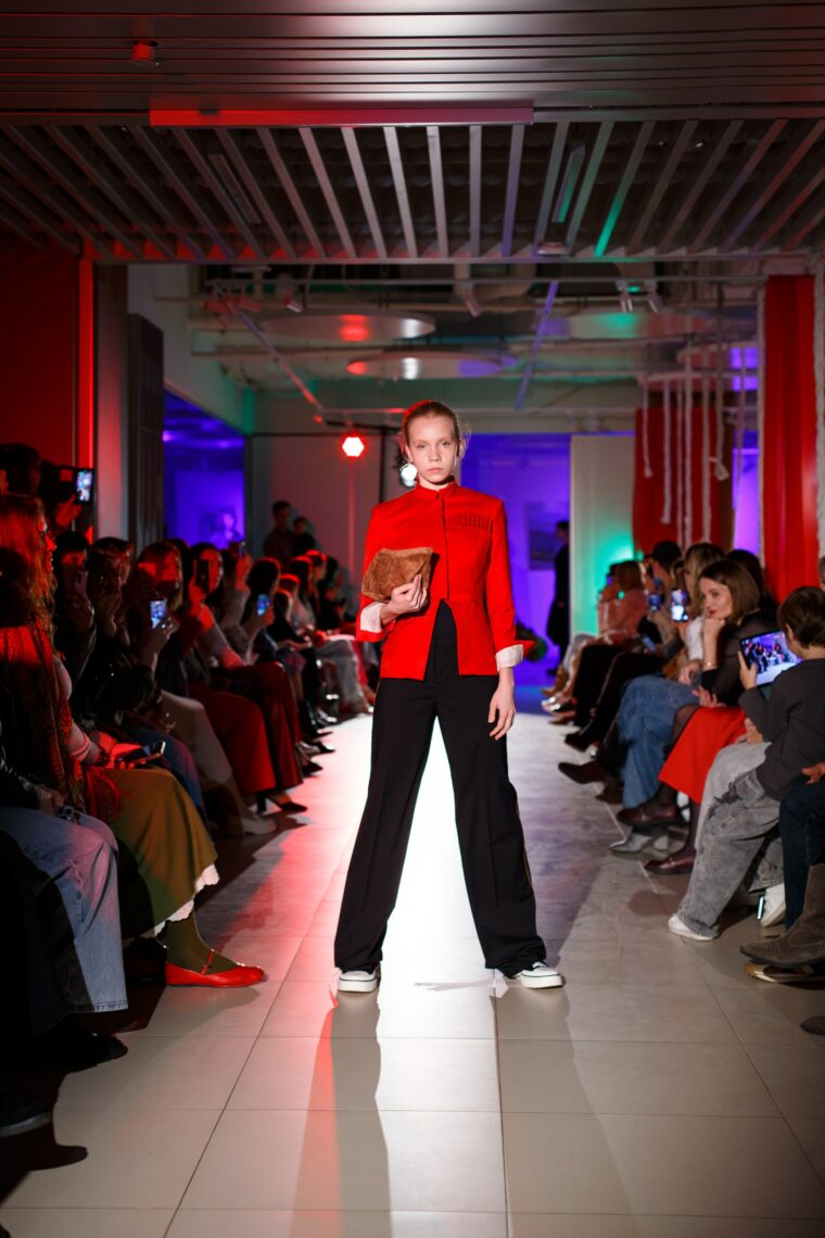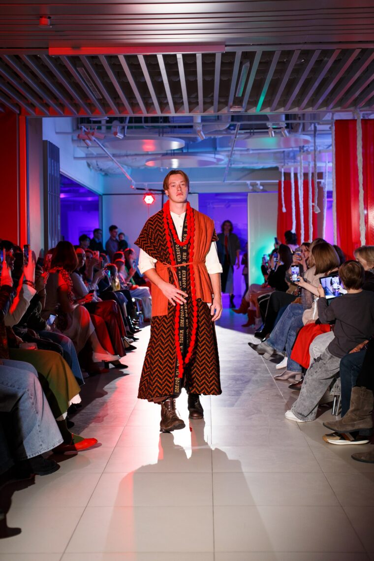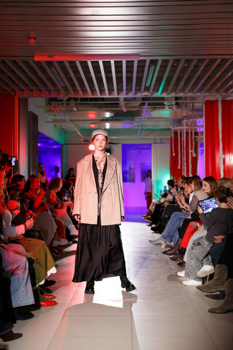 Центральным элементом вечера стала коллаборация-перформанс, объединившая авторскую одежду и аксессуары в захватывающую повествовательную историю на подиуме.