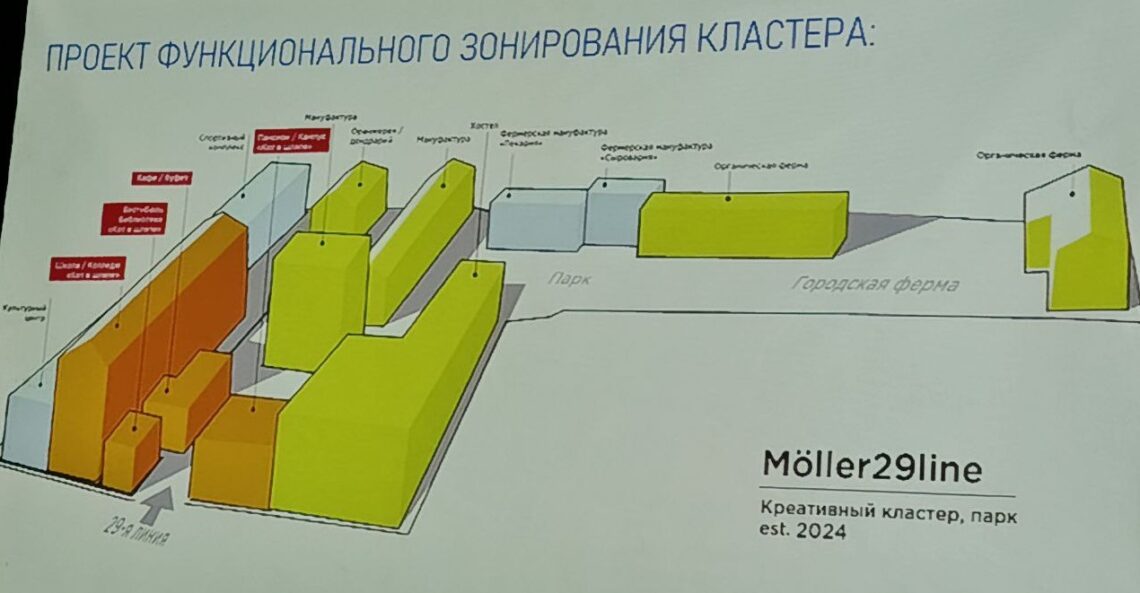 «Средняя школа и колледж, ворк-кластер, библиотека и зона общепита», — перечислил будущие активности на территории будущего образовательного учреждения Вадим Калинич.