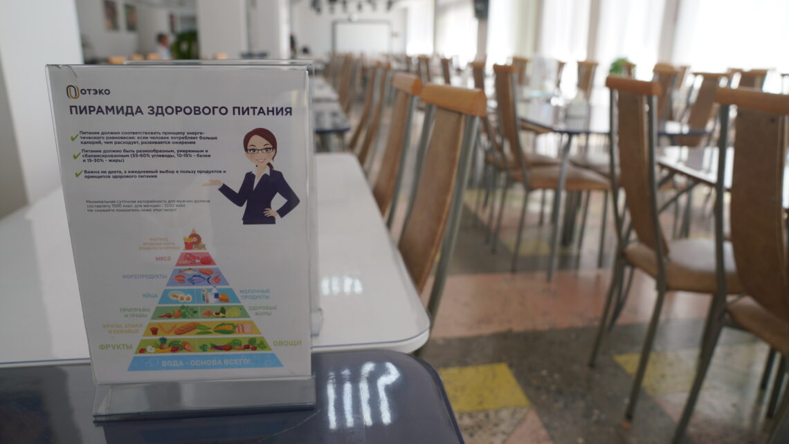 В столовых наливного и навалочного терминалов ОТЭКО порту Тамань, кроме обедов, организованы и завтраки, и ужины, а также питание в ночное время для работников с соответствующим графиком. Доставка горячих заказов осуществляется по 48 локациям на производстве – специально оборудованным комнатам приема пищи. Заказ обеда в столовых реализован через онлайн-сервис – сотрудник выбирает из полутора десятков блюд и может сбалансировать рацион по маркировке «Светофора здорового питания».