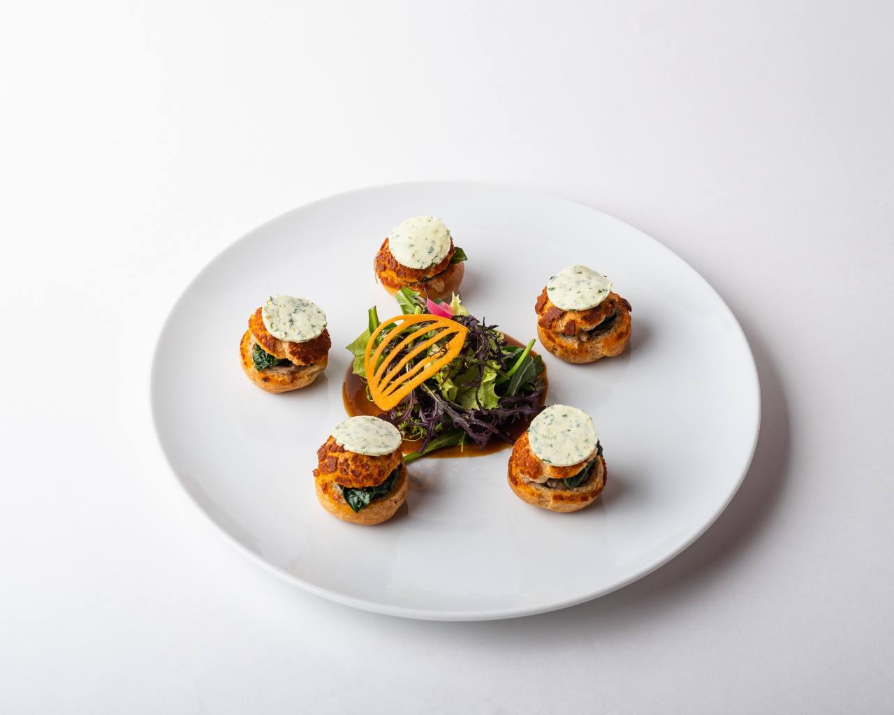 Бургундские escargots в воздушных эклерах gougère и петух «Coqulet roti».