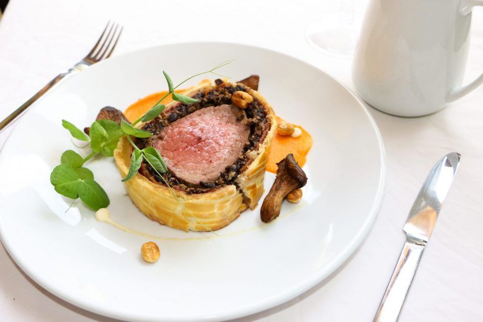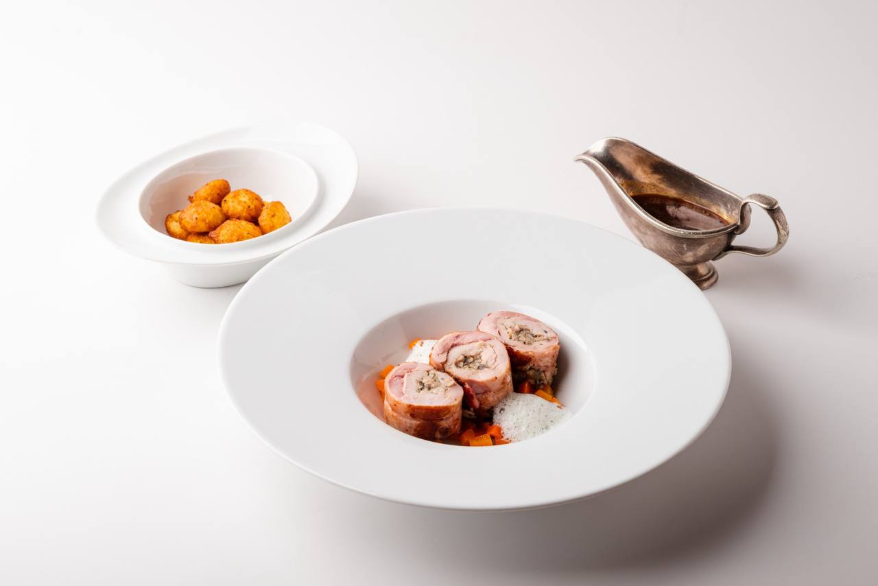 Также в меню: классические блюда французской кухни: бургундские эскарго (блюдо из улиток — прим. ред.) в воздушных эклерах гужер (французская несладкая выпечка из заварного теста — прим. ред.) в сопровождении классического соуса beurre escargot и салата месклен; петух «Коклет роти», фаршированный финиками и сезонными грибами; классическое крем-брюле с нотками бурбонской ванили.