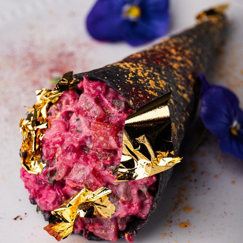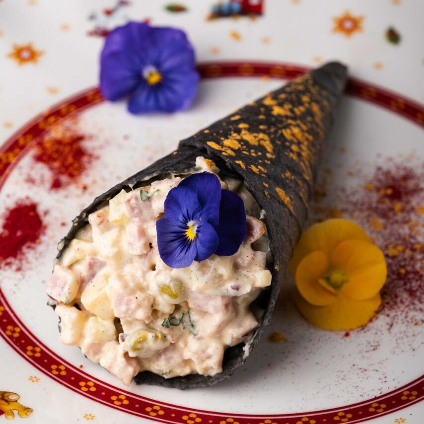«Сельдь под шубой» и «Оливье с копченостями» в фирменном вафельном рожке «Корнете».
