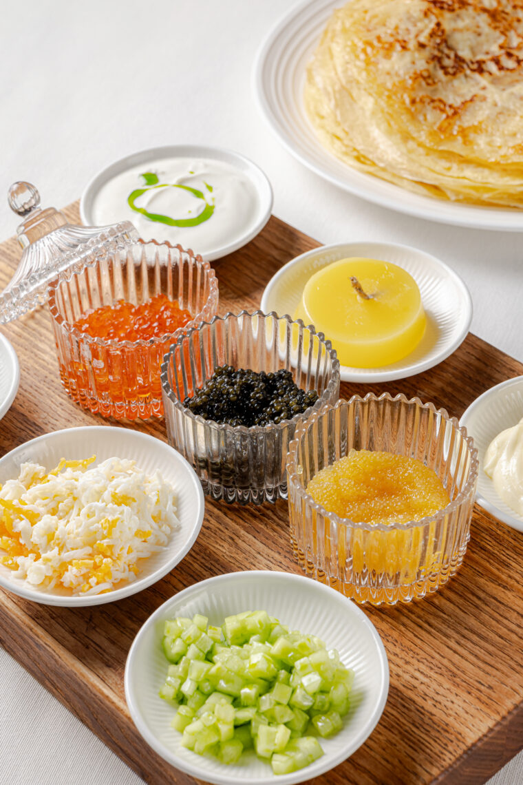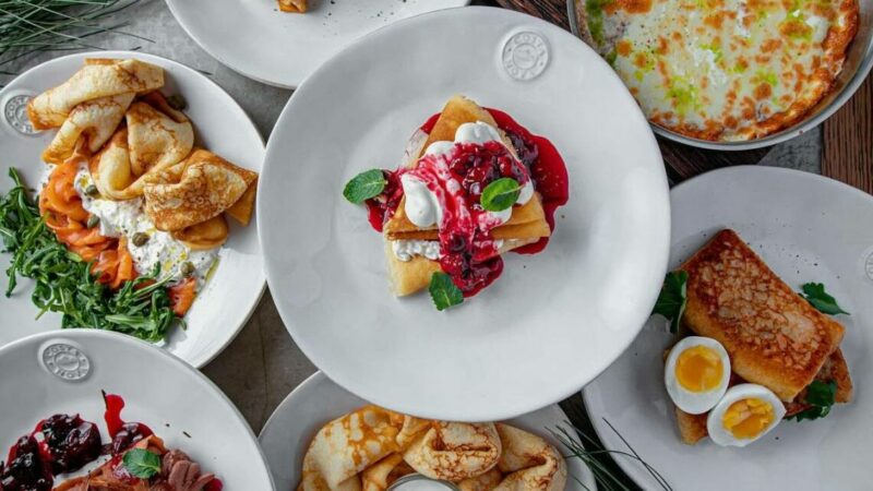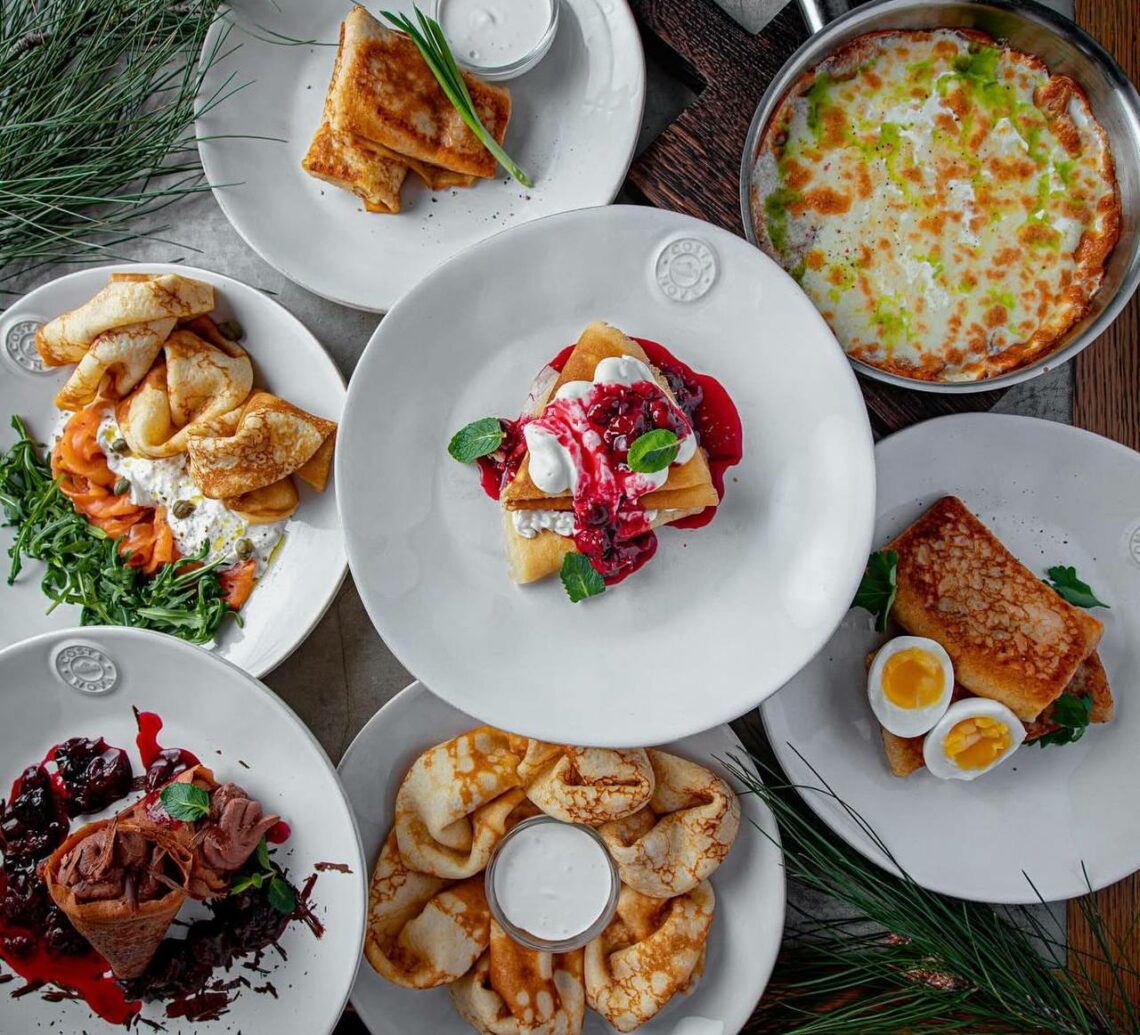 В меню ресторанов Tangiers Lounge, Kinex и «Сыроварни» в Масленичную неделю будут: блины с мраморной говядиной и перечным соусом, блины с креветками и соусом биск и блинная лазанья.