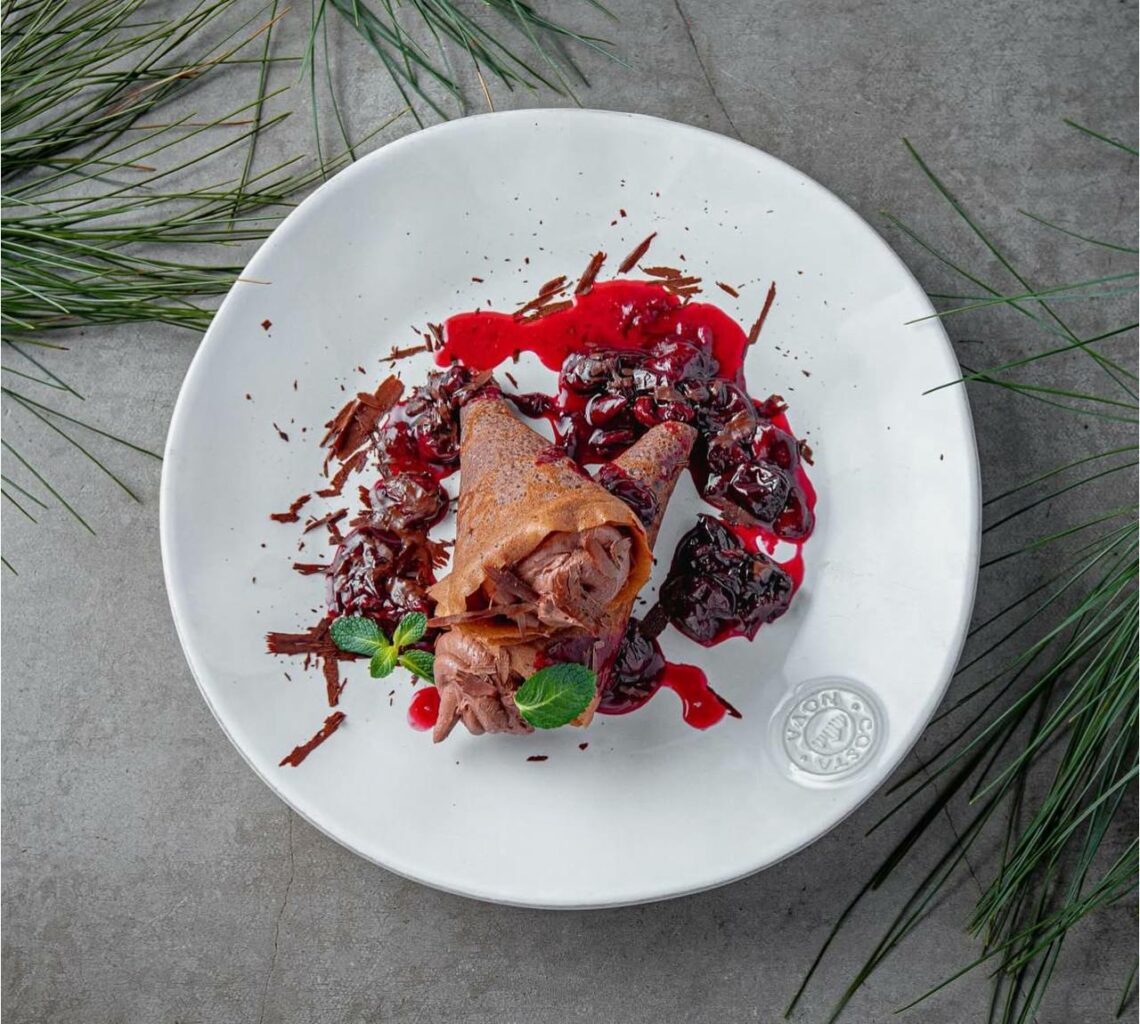 Блюдо «Блины с шоколадным кремом и вишней»
