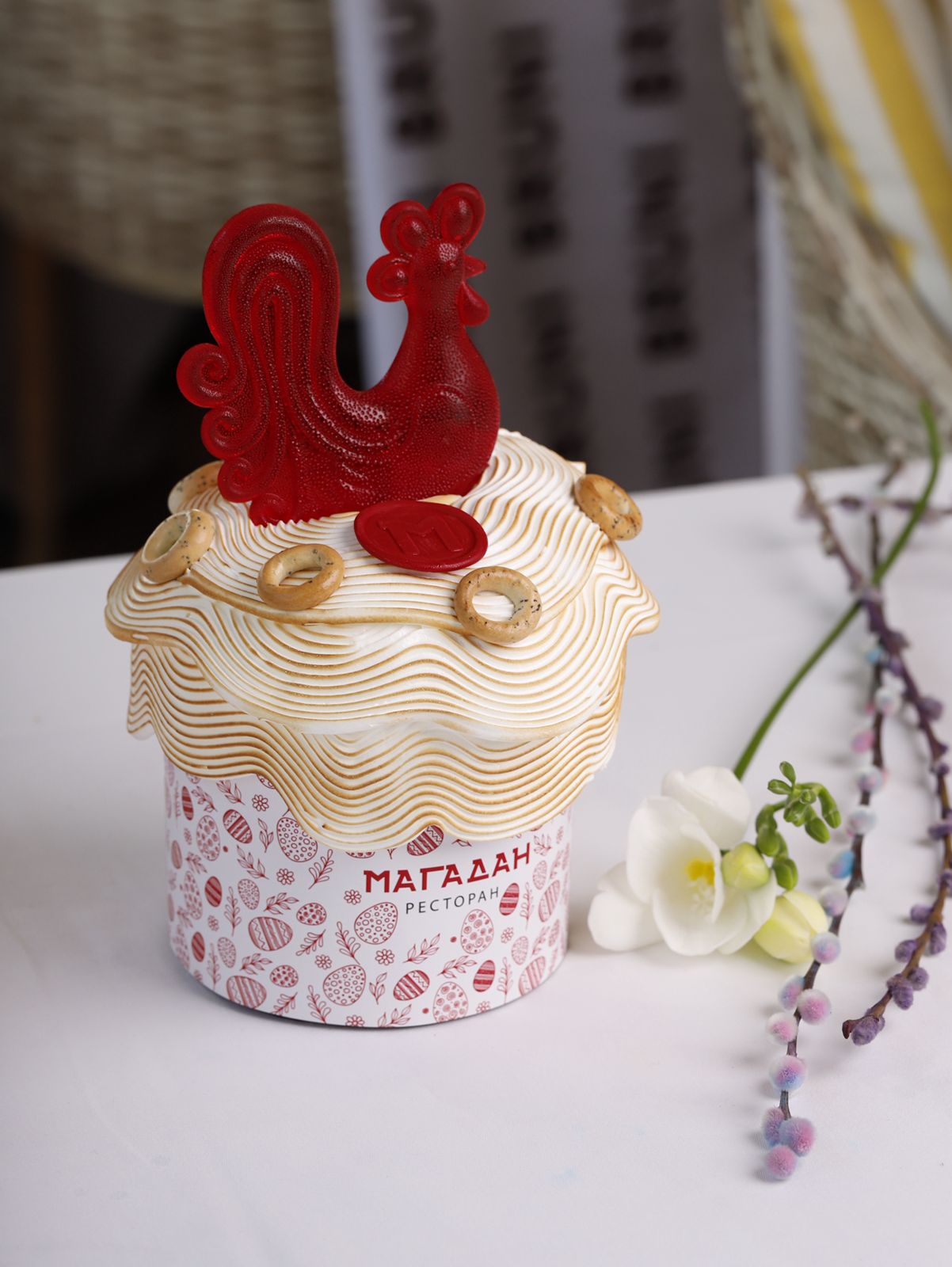 Ресторан предлагает четыре вида куличей: фирменный кулич с петухом, панеттоне с цукатами и начинкой из клубничного шоколада со сливками и клубничным пюре, шоколадный кулич с орехами и начинкой из «Нутеллы» и с шоколадными каплями в тесте, а также классический кулич с цукатами.