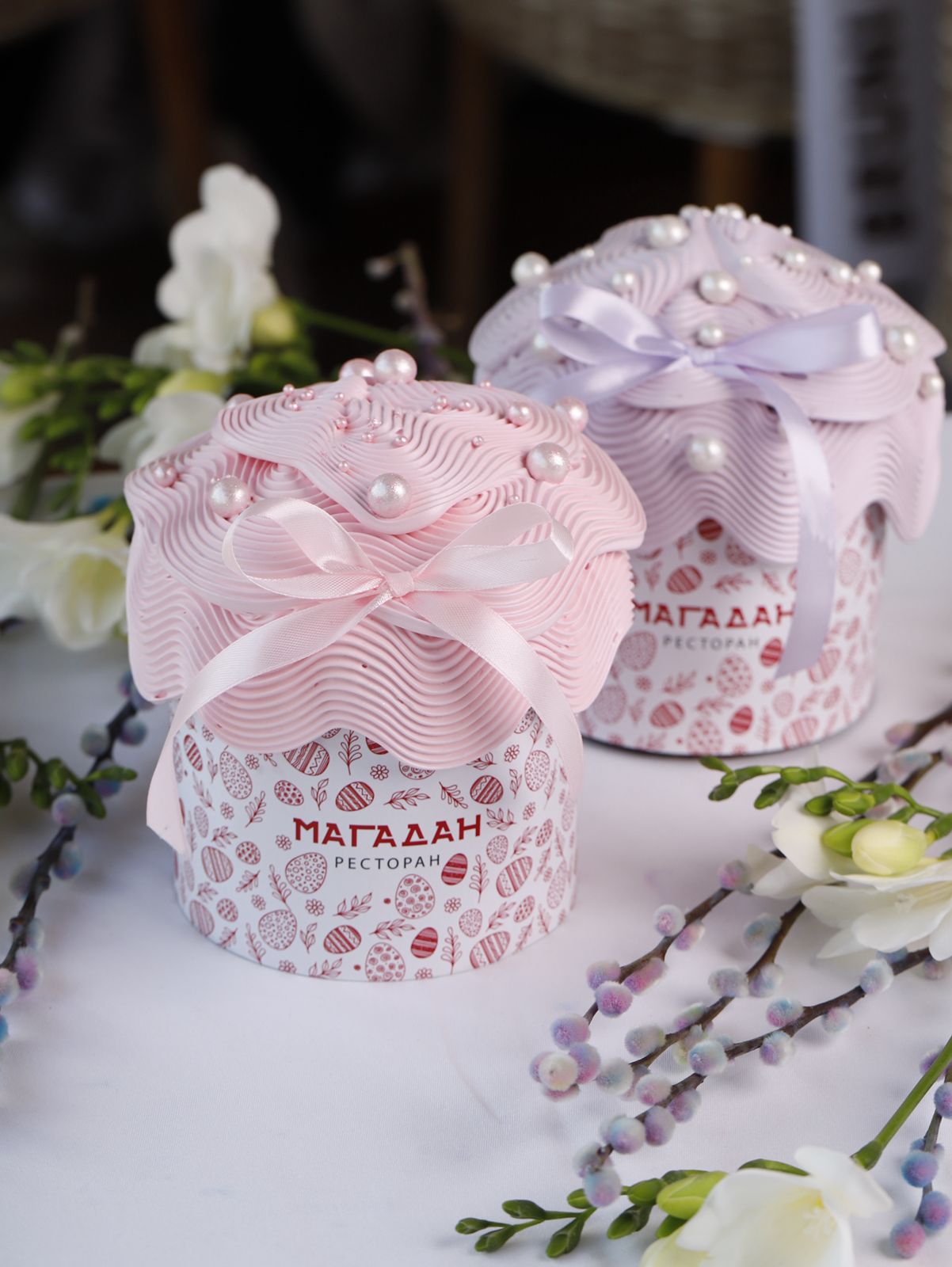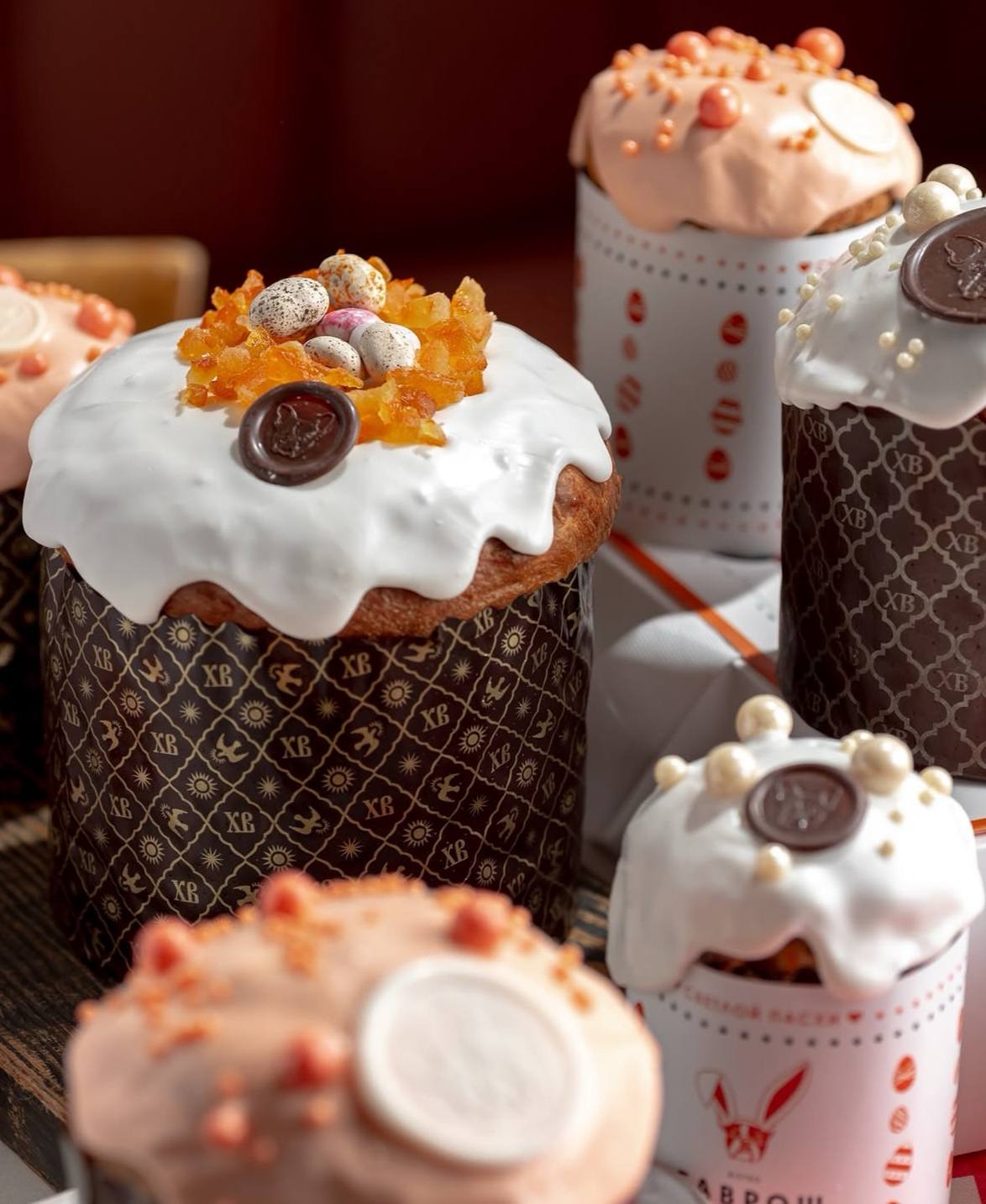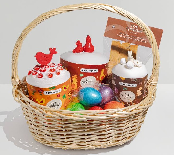 В нашем пасхальном меню кондитерской: кулич «Клюква-изюм-яблоко», кулич «Шоколад», кулич «Творог и вишня», кулич «Айва-черри». Каждый кулич — с ароматной глазурью и уютным вкусом, который создает праздничное настроение. Кондитерская также представила пасхальные корзины.