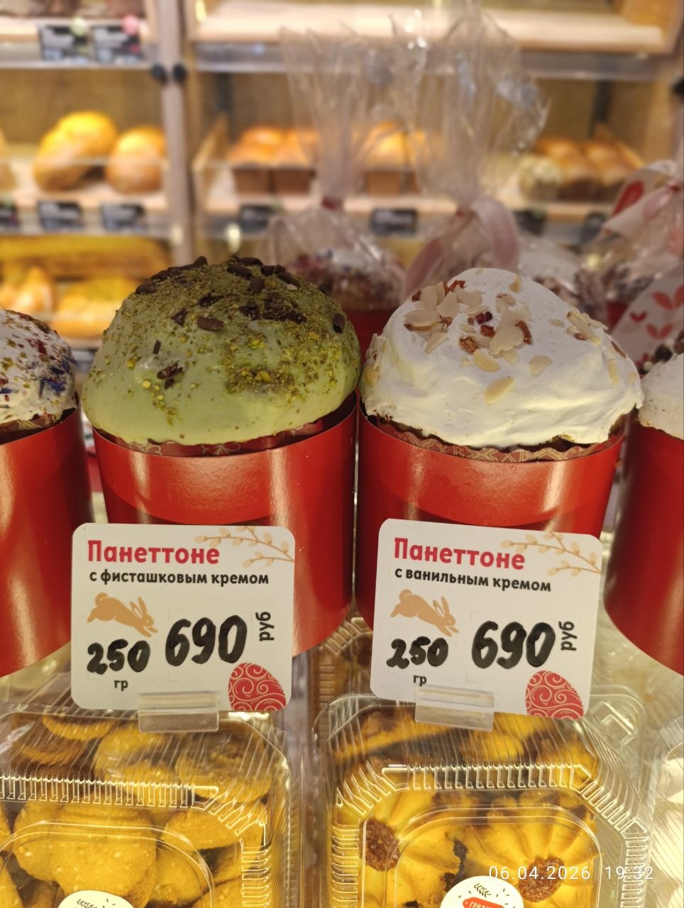 Сеть пекарен представила в 2026 году пять разных видов куличей: традиционные с плотным невесомым мякишем, творожно-апельсиновые куличи, панеттоне на закваске Левито Мадре, панеттоне с кремовой начинкой из фисташки или ванили, ржаной кулич с морковными цукатами. Также в пасхальном меню пекарни — традиционная творожная пасха — холодный десерт из отборного натурального 9% творога с добавлением сливочного масла, сметаны, сахара, ванили и вяленой клюквы.