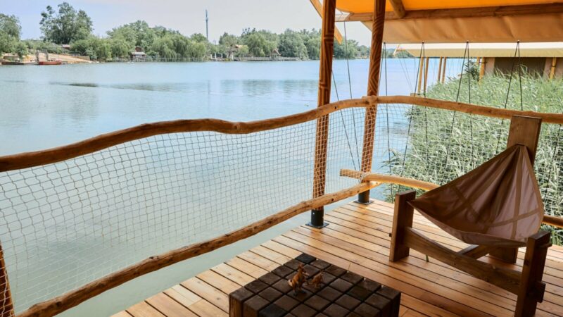 Глэмпинг расположен на берегу озера в станице Ольгинской в Аксайском районе Ростовской области. Подойдет для семейного отдыха вдали от городской суеты. Здесь можно арендовать беседки с видом на озеро, уютные домики, а для детей есть игровая площадка. Любителям активного отдыха доступны рыбалка, аренда лодок и волейбольная площадка.