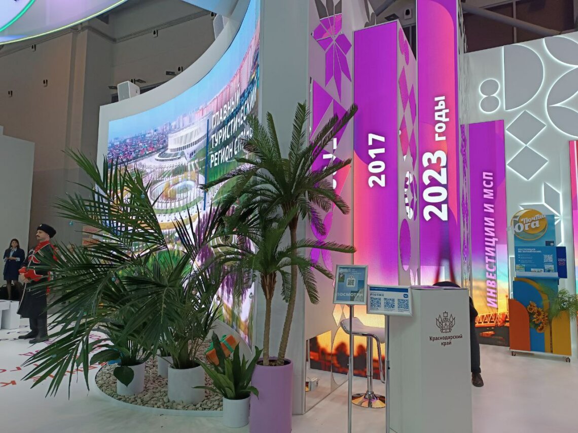 Краснодарский край – это край искусства. На стенде региона прошла презентация нового ультрасовременного культурно-делового центра на Черноморском побережье «Геленджик-Арена». Открытие центра запланировано на март 2024 года. Посетители стенда увидели презентационный ролик проекта.