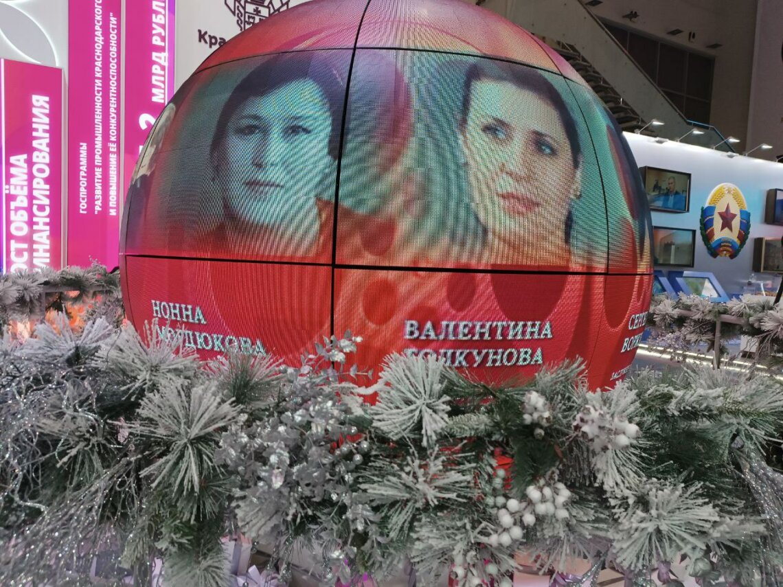 К слову, на стенде края можно было заметить большой шар-глобус с фотографиями знаменитых людей, родившихся на Кубани. Кроме Маргариты Симоньян там можно было увидеть портреты Михаила Галустяна, Валентины Толкуновой, Нонны Мордюковой, Андрея Григорьева-Апполонова и многих других уроженцев края.