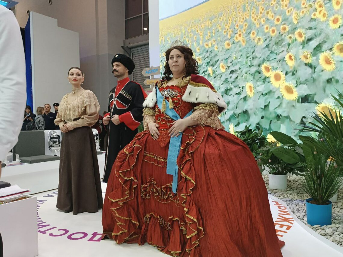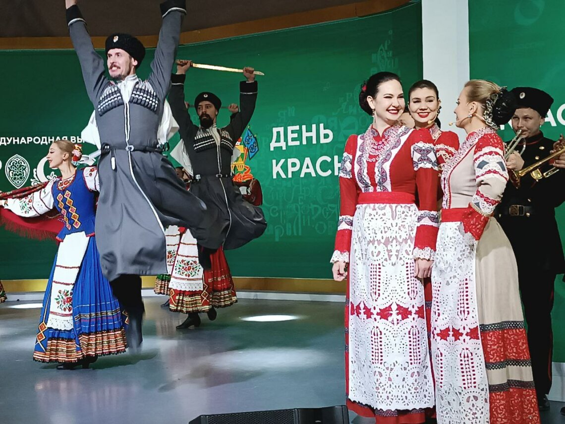 День Краснодарского края на стенде начался с выступления казачьего ансамбля – исполнители лучше любого ведущего своими песнями созвали благодарных слушателей со всей выставки. Собравшимся было предложено поиграть в шуточный квиз и проверить свои знания о Кубани: памятник героям какого фильма установлен в Сочи, что такое Абрау-Дюрсо и в честь какого правителя был назван Екатеринодар.