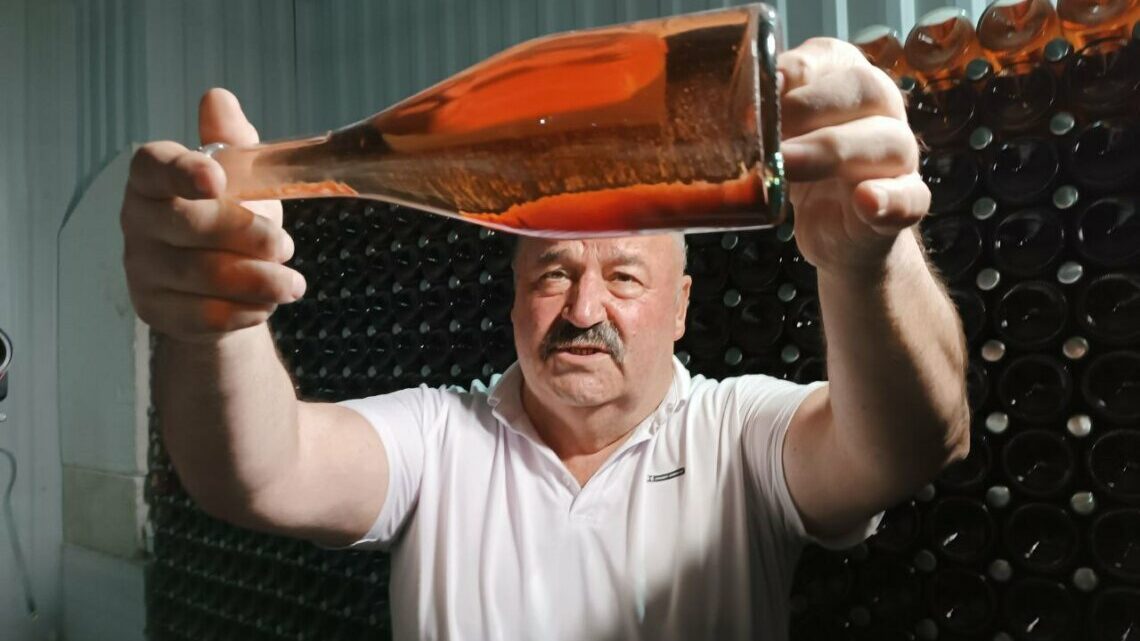 Так и быть, говорит Гюльбала, покажу вам и погреб. В этом прохладном помещении вдоль стены стоят в ряд выше человеческого роста шкафы с покрытыми пылью бутылками. Особая гордость – экспериментальный образец, бутылки емкостью полтора литра. Винодел поднимает одну – и на свету мы видим осадок, который является свидетельством натуральности вина. После этот осадок уберут – и получится готовое «розе».