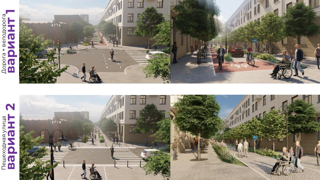 По ее словам, первый вариант эскизного проекта улицы посоветовали эксперты Высшей школы экономики. Согласно ему, на улице им. Чапаева останется одна полоса движения для автомобилей в направлении с запада на восток и велосипедная дорожка. Второй вариант, предложенный жителями, делает улицу еще более пешеходной. «В каждом из вариантов есть свои плюсы. В случае первого – у нас получается неплохая транспортная артерия для велосипедистов, в случае второго, когда остается только пешеходная дорога – увеличивается количество зелени», — прокомментировала она.
