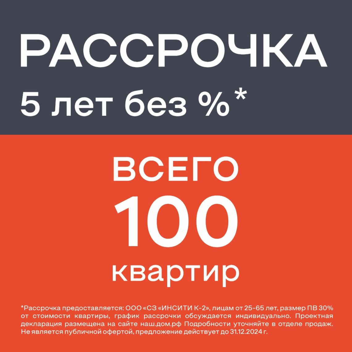 Рассрочку предоставляет застройщик. ООО «СЗ Инсити К2».