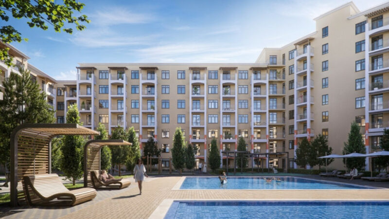Особое внимание уделено придомовой территории: здесь построят семь бассейнов площадью 2600 кв. м, благоустроенные места отдыха с беседками, арт-объекты и фонтан, многофункциональные детские и спортивные площадки, спроектированные с учетом потребностей жителей всех возрастов.