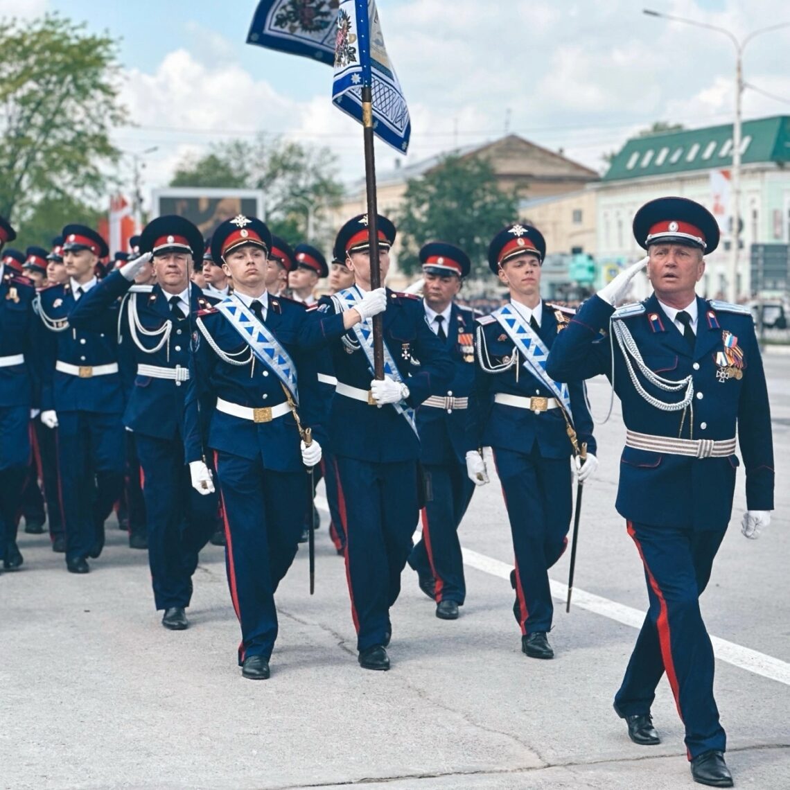 Парад завершился маршем «Прощания славянки», который исполнил сводный оркестр Новочеркасского гарнизона.