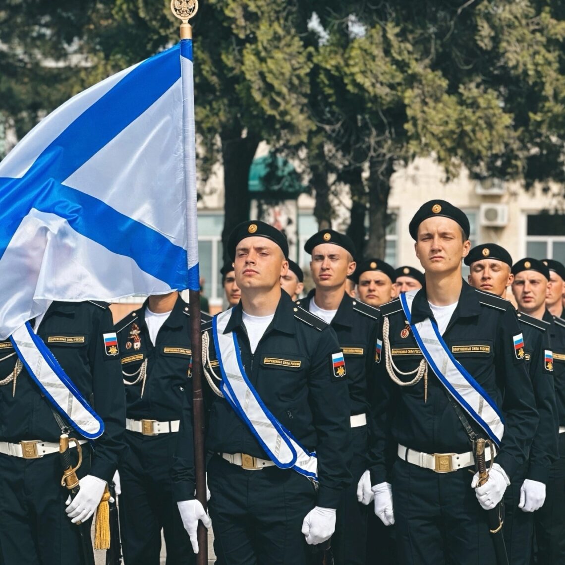Парад начался с выноса Государственного флага Российской Федерации и Знамени Победы в Великой Отечественной войне 1941-1945 годов. В знаменную группу вошли лучшие военнослужащие 150-й мотострелковой дивизии.