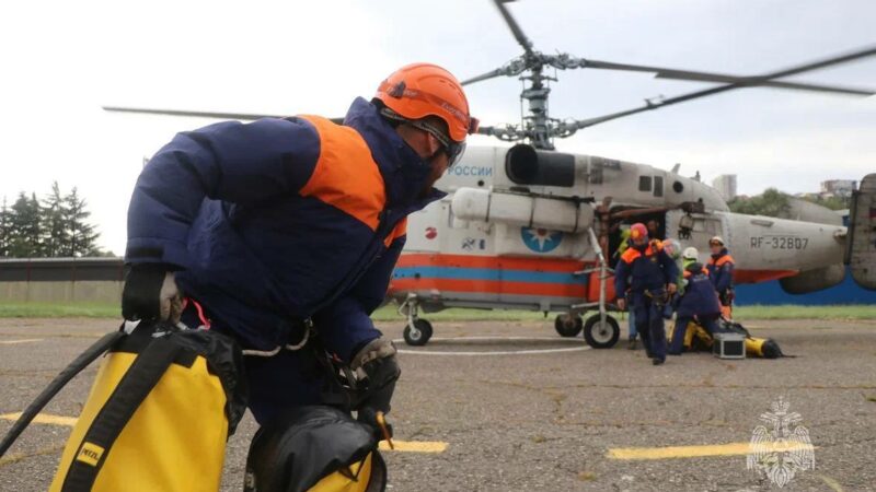 Борт Ка-32 МЧС России доставил группировку спасателей и медика ЮРПСО МЧС России на северный склон горы Фишт. Работу осложняли непогода и темное время суток.
