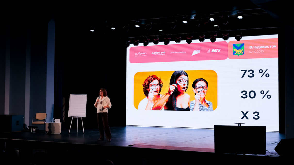 Академия развития гражданского общества «Добрино» экосистемы Добро.рф провела 7 октября во Владивостоке просветительский интенсив «Интеллекты на службе Добра». Свыше 270 студентов Приморья стали частью большого федерального проекта «Добрый день».