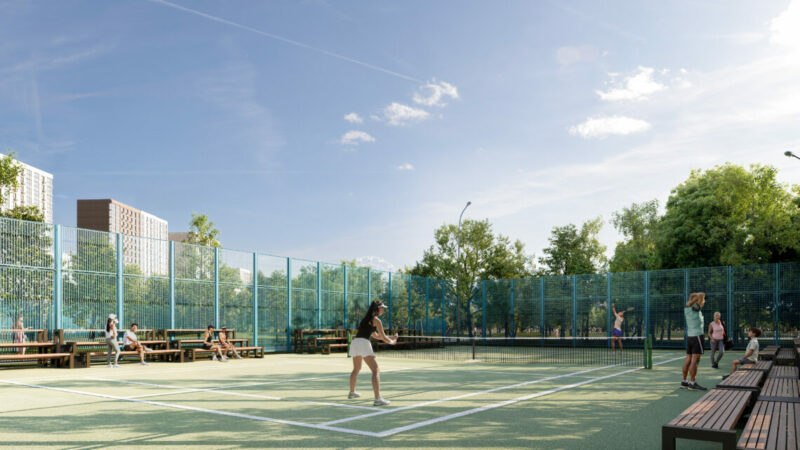 В рамках проекта на территории ЖК будут обустроены современные дворовые площадки с безопасными покрытиями и тренажерами. Ключевым элементом станет 20-гектарный парк, где разместятся зоны для командного и индивидуального спорта: футбольное поле, площадки для баскетбола, волейбола и тенниса, а также скейт-парк и пространство для йоги. Территория будет окольцована беговыми и велодорожками.