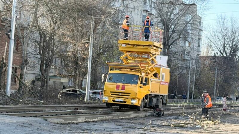 В результате ночной массированной воздушной атаки на город повреждения получила трамвайная инфраструктура. Об этом сообщила глава администрации города Светлана Камбулова.