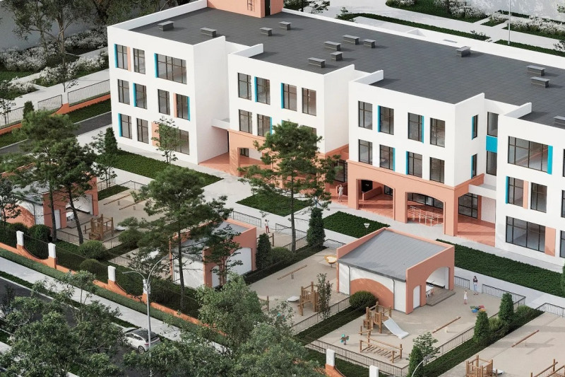 Первый детский сад, расположенный рядом с корпусами 1-3 ЖК «Кипарис», находится в активной фазе строительства — готовность монолитного каркаса здания уже превышает 70%. Завершены работы по гидроизоляции бетонных конструкций. Далее строители приступят к кирпичной кладке. Ввод в эксплуатацию запланирован на 2027 год. Трехэтажное здание площадью 5928 м² рассчитано на 200 детей. В нем разместятся группы, кабинеты логопеда и психолога, спортивный и музыкальные залы, помещения для творческих занятий и подготовки к школе. На прилегающей территории обустроят игровые площадки с теневыми навесами.