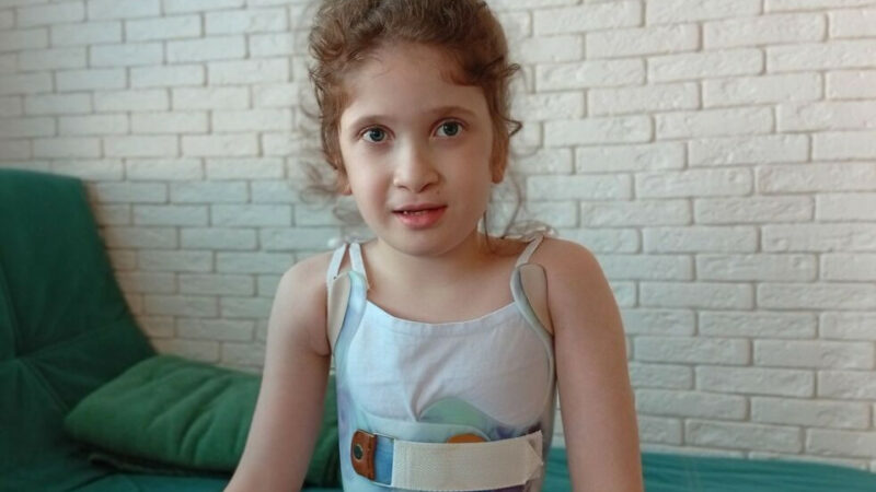 Как рассказывает Оксана Байловская, мама Евы, дочери прооперировали стопы, и она смогла ходить, но появилось искривление позвоночника.