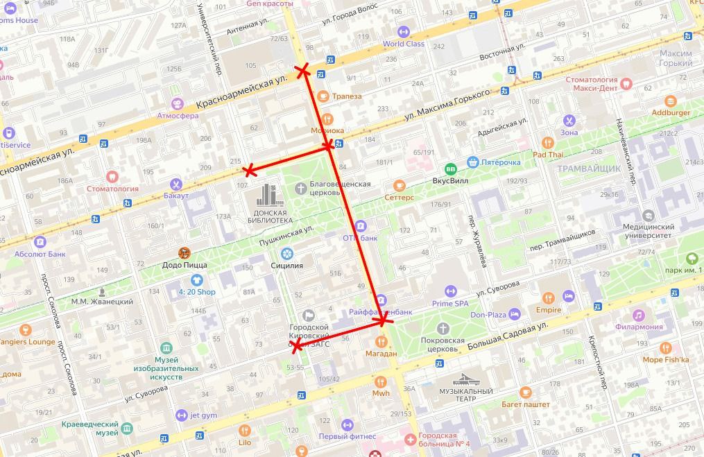 В связи с проведением мероприятий правоохранительной направленности ограничено движение транспортных средств по Кировскому — от Красноармейской до Суворова; по Горького — от Университетского до Кировского; по Суворова от Университетского до Кировского, — говорится в сообщении.