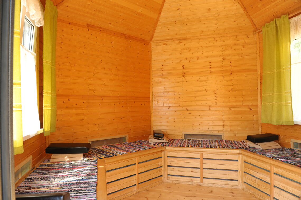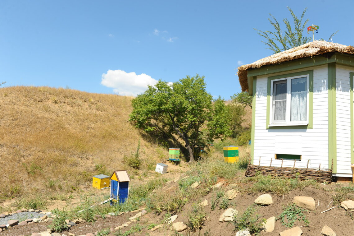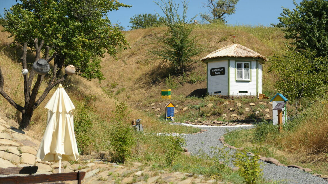 «Пчелиная баня» (или апидомик – прим. «ДГ.Юг»), построенная на территории, — это небольшой домик, где можно полежать на ульях, чувствуя вибрации крыльев пчел и вдыхая эфирные фракции нектара.