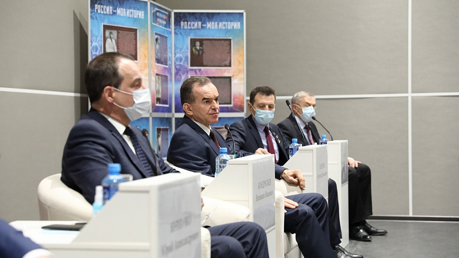 Также 12 февраля губернатор края Вениамин Кондратьев и спикер ЗСК Юрий Бурлачко встретились с представителями молодежных и ветеранских организаций в историческом парке «Россия – моя история».