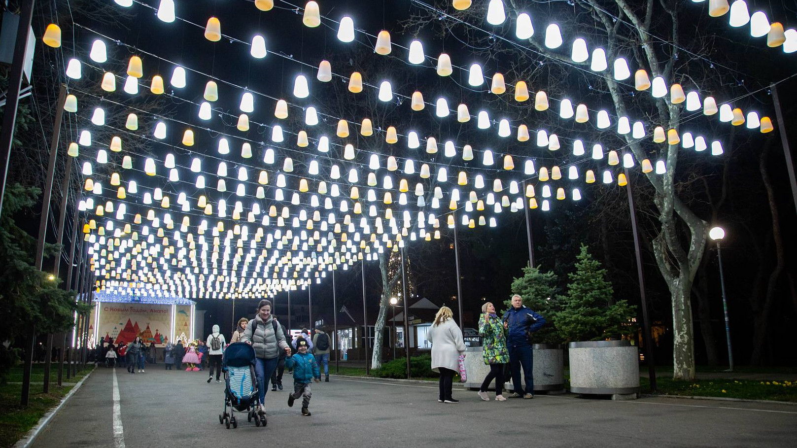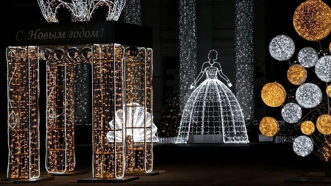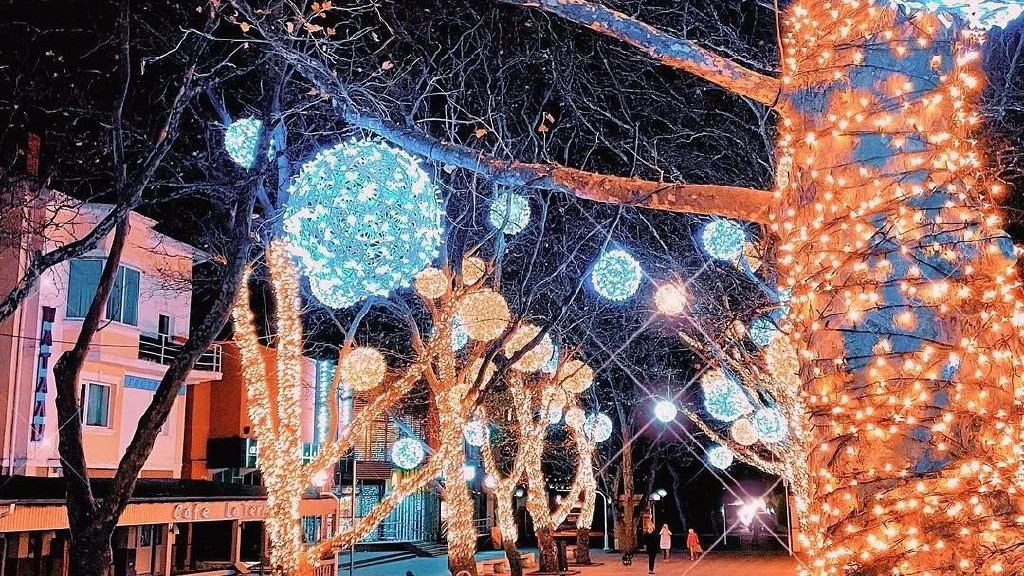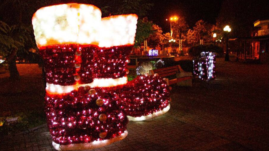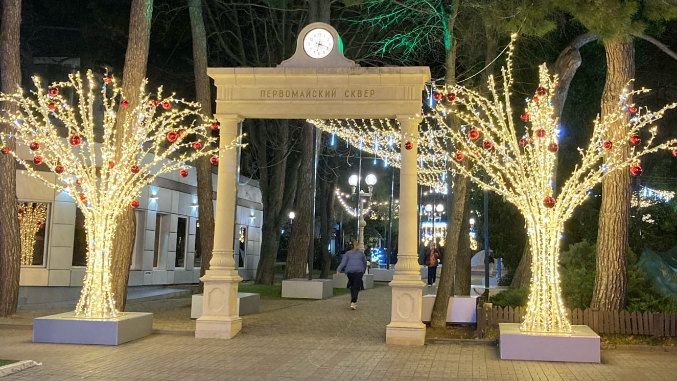 В Краснодарском крае курортные города готовятся к встрече Нового года. Для создания праздничного настроения улицы украсили гирляндами, на площадях установили елки и яркие инсталляции.