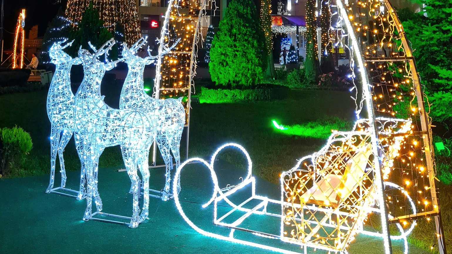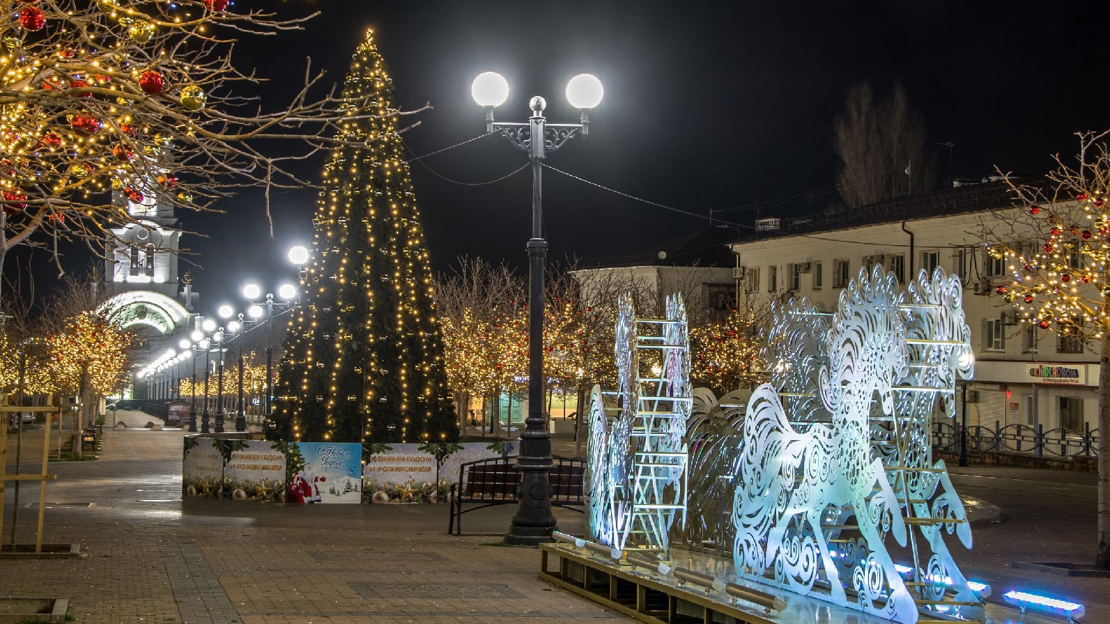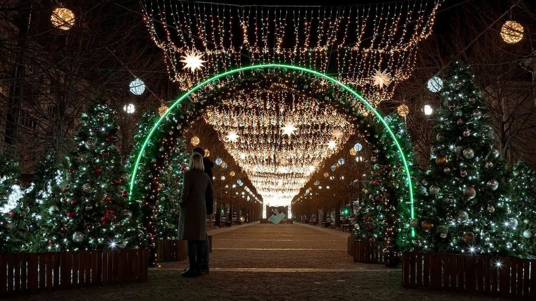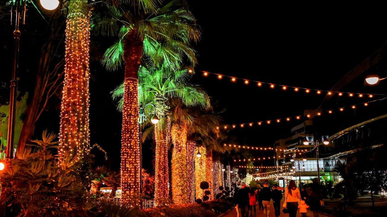 В Краснодарском крае курортные города готовятся к встрече Нового года. Для создания праздничного настроения улицы украсили гирляндами, на площадях установили елки и яркие инсталляции.