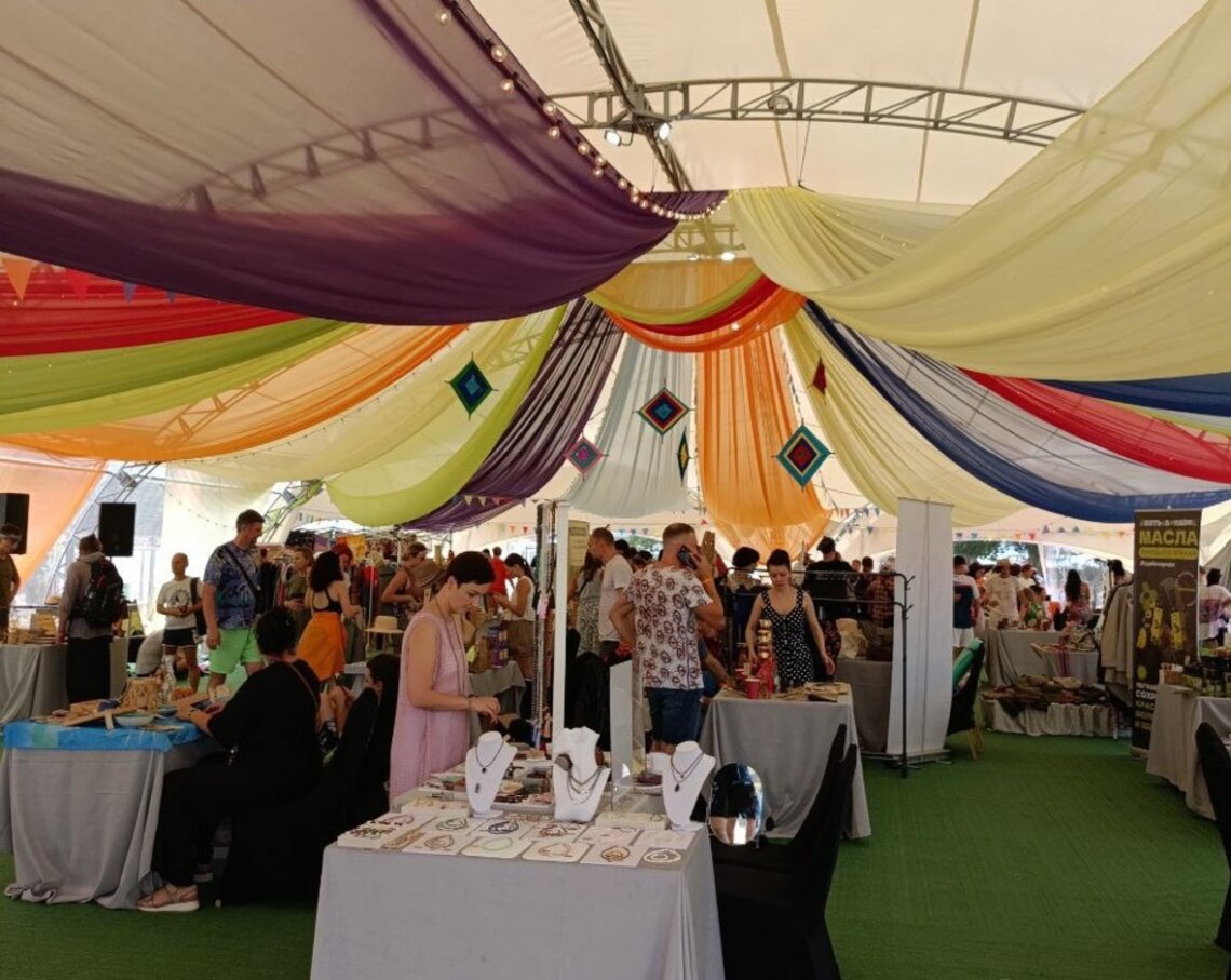Одной из центральных площадок фестиваля стал маркет, где были представлены товары различные экотовары. Предприниматели представили здесь самые разные товары: одежду, украшения, благовония, предметы декора, продукты и косметику.