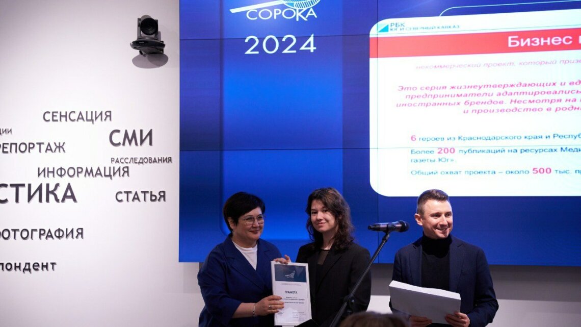 Проекты Медиа Группы деловых изданий «Бизнес и точка», в которую входят такие деловые издания, как РБК Юг, «Деловая газета.Юг» и «Ведомости Юг», получили первое и четвертое места в номинации конкурса «Сорока-2024».