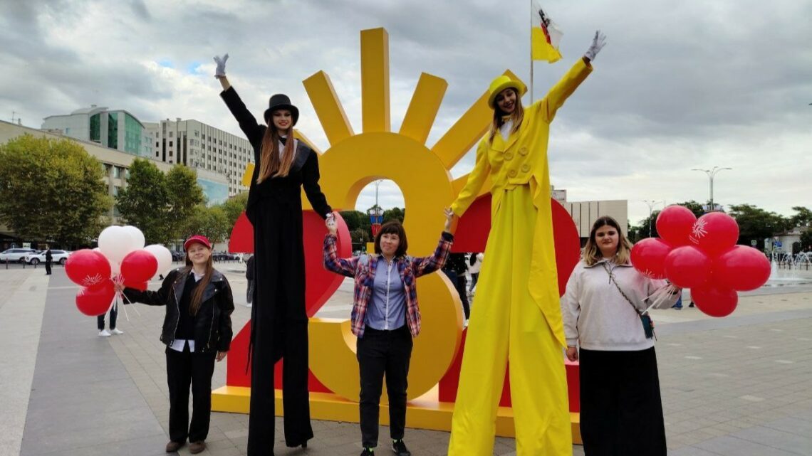 В День города в Краснодаре прошла Всероссийская акция «Экскурсионный флешмоб», в рамках которой провели три бесплатных экскурсии. На главной городской площади, Казачьей площади и на улице им. Чапаева волонтеры и ходулисты, они раздавали сувениры в рамках работы интерактивного маршрута.